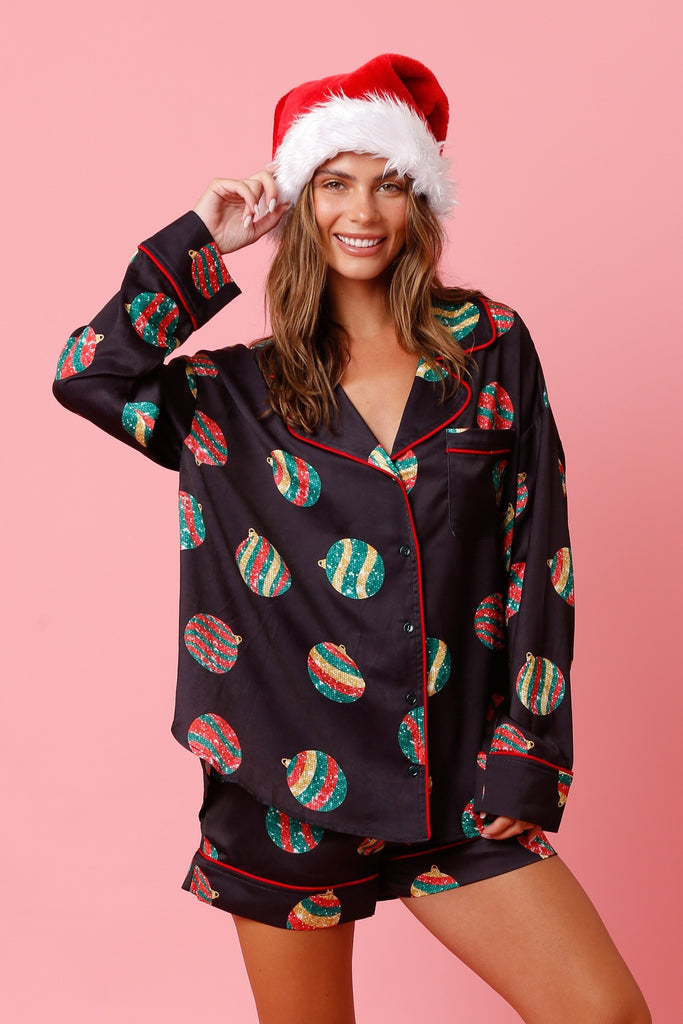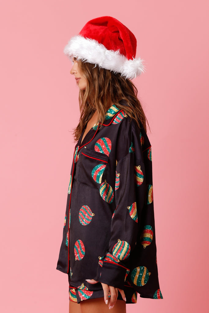 Christmas Ornament Pattern Satin PJ Top