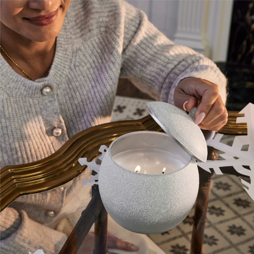 Embrace the mountain-fresh fragrance of iconic Frasier Fir with this fresh Flocked Novelty 4-Wick Statement Candle. Make a statement with this uniquely shaped vessel reminiscent of your favorite snow frosted memories.