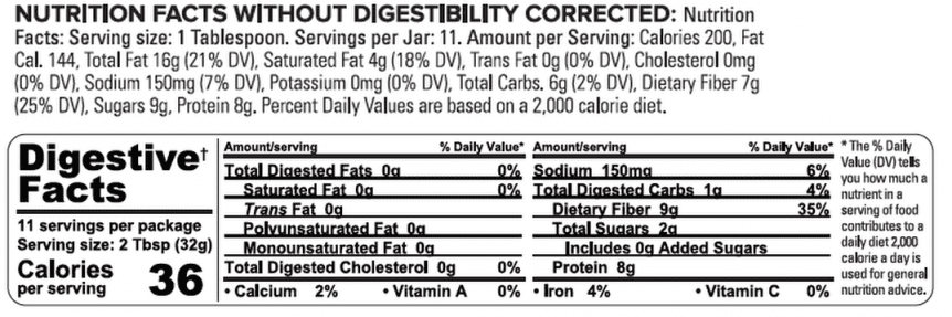 Digestibility-Corrected explains how much the body may digest of carbohydrates or fats. The FDA adopted this term into the Code of Federal Regulations. Labels with this Symbol indicate that not all carbs and fats may be digested. If you require higher amounts of calories look for food