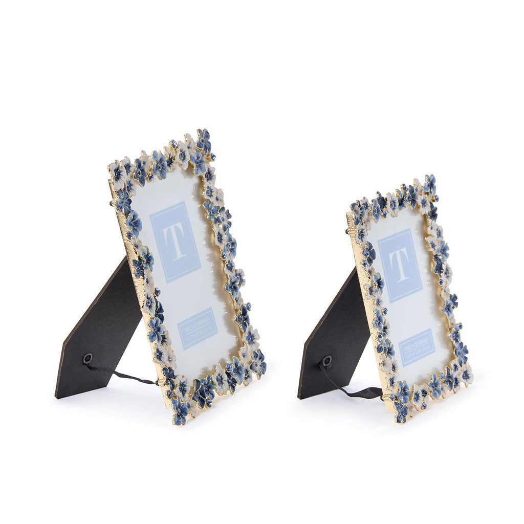 Hydrangea Hand-Painted Enamel Frame with Crystal Jewels - Blue