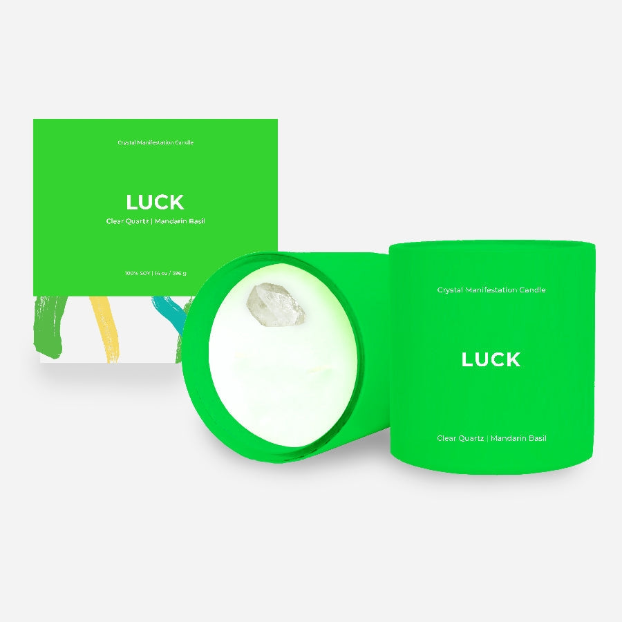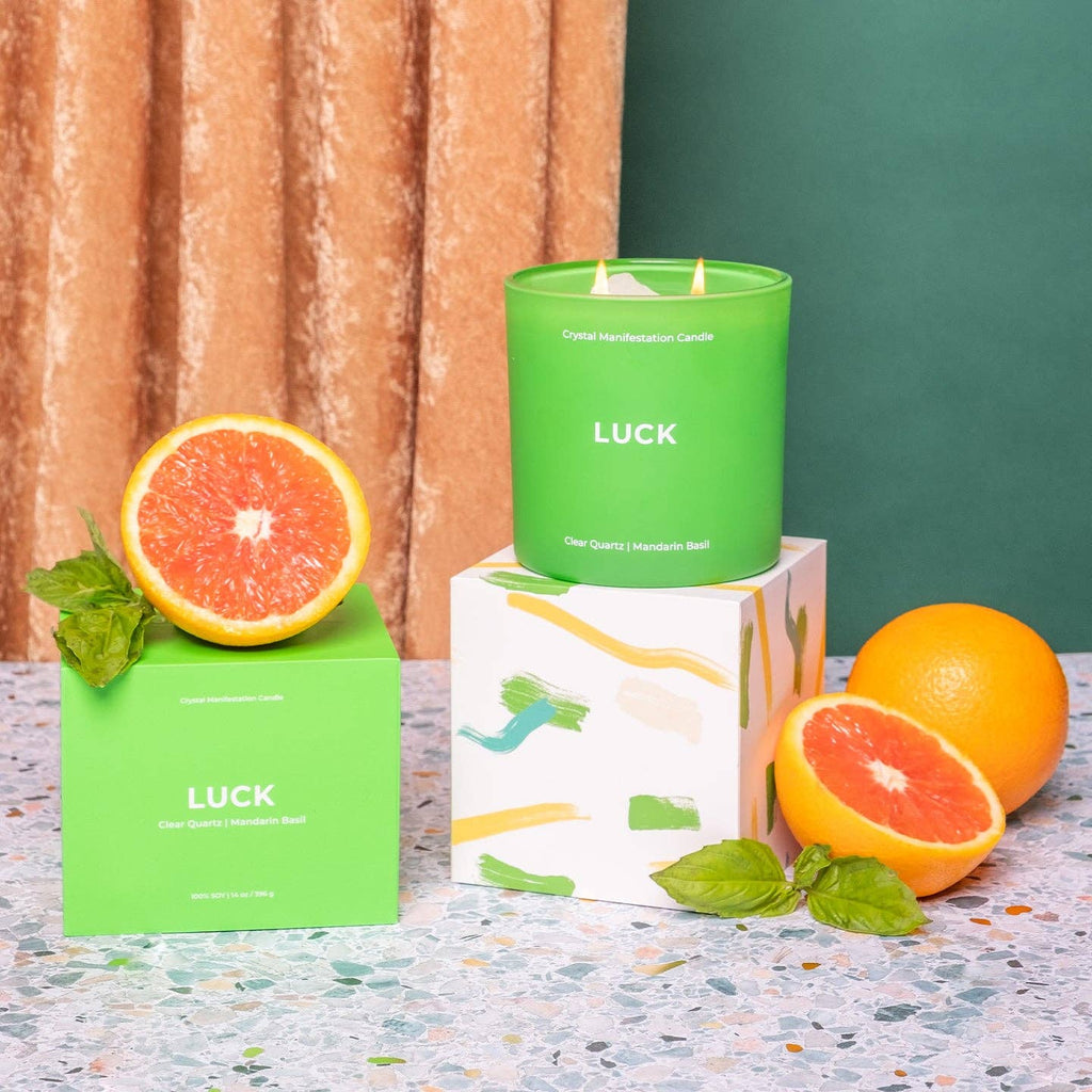 Luck Crystal Manifestation Candle - Mandarin Basil Scented with Clear Quartz