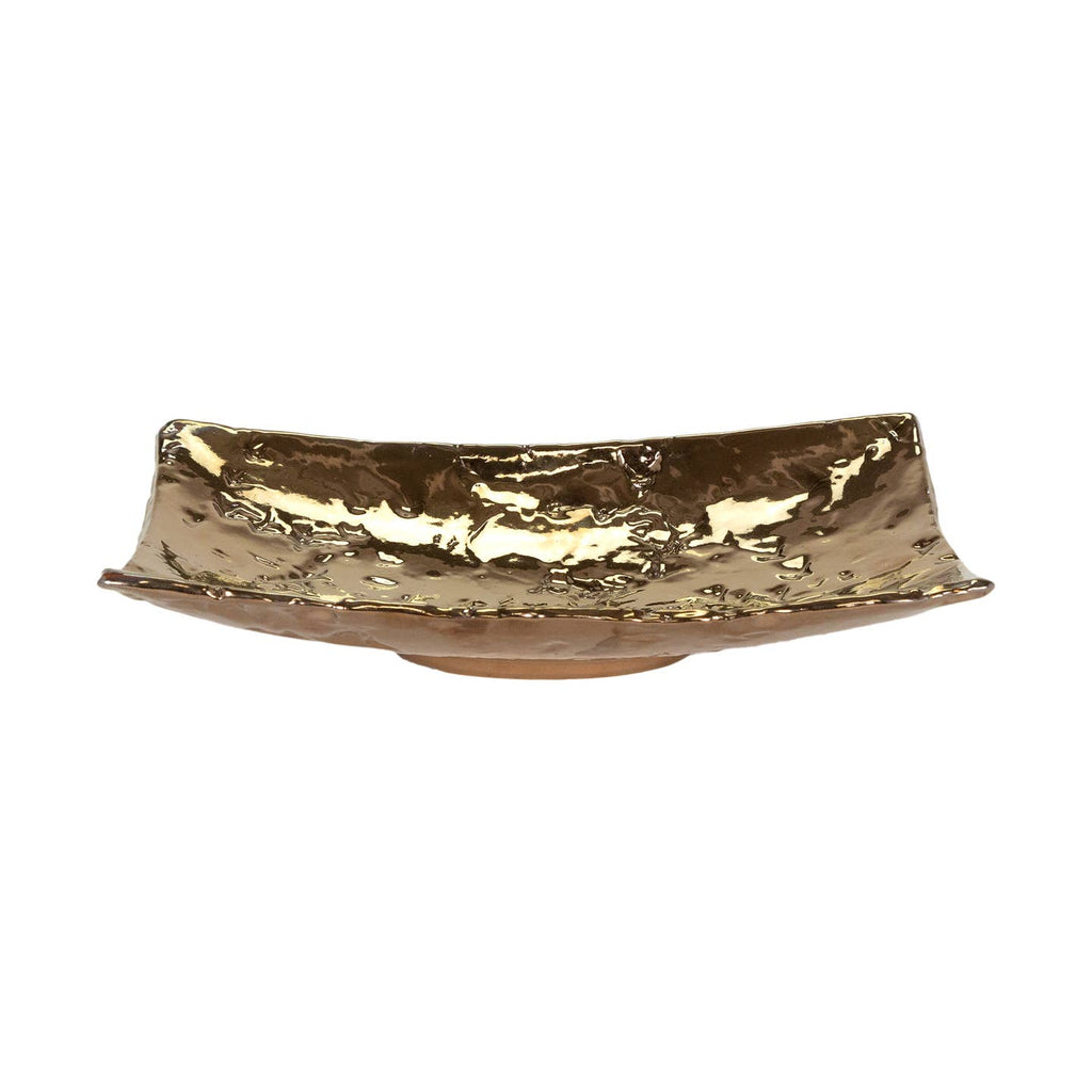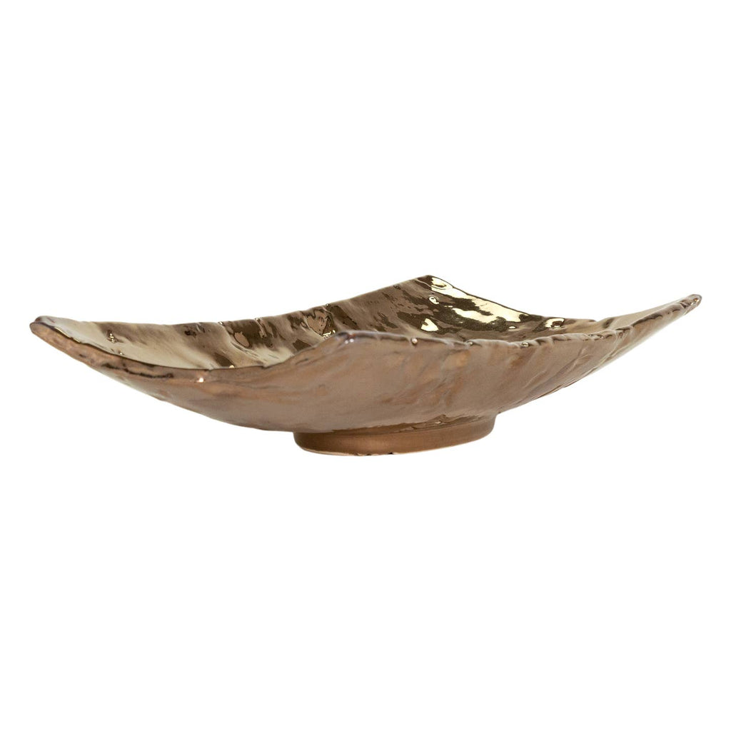 Exude elegance and style with the Remo Bowl, a remarkable decorative bowl or tray perfect for enhancing your interior design and home décor. Creatively designed in a boat shape, this ceramic bowl features a luxurious gold color that adds a stunning appeal to any space. Its hammered texture adds a touch of character and uniqueness, while the thin pedestal allows it to sit gracefully on any surface. Measuring at 12Lx6.5Wx3H, it offers ample space for displaying your cherished items or creating stylish arrangements. Make a statement with the Remo Bowl and let your home shine with its exquisite beauty!