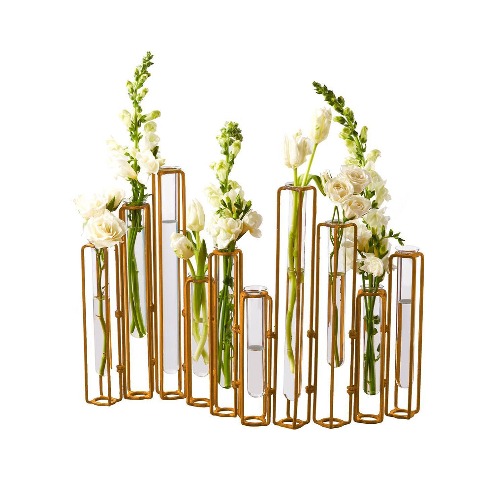 Lavoisier Set of 10 Hinged Flower Vase with Antiqued Gold Finish