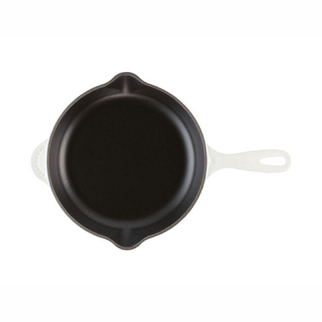 The enameled cast iron Traditional Skillet is a versatile kitchen essential for searing, sauteing, stir-frying and more. The interior surface is finished with a black satin enamel that eliminates the need for the traditional seasoning and maintenance of raw cast iron. Specially formulated for higher surface temperature cooking, the enamel develops a natural patina over time making it virtually nonstick and easy to clean.